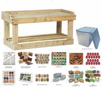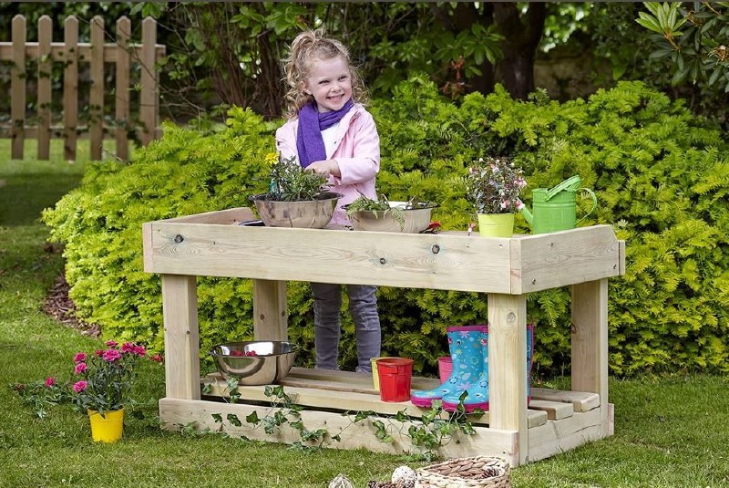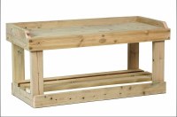 A freestanding, versatile bench that can be used for a variety of outdoor activities, whether it's gardening, messy play, construction, or crafts. Features a low-level storage shelf.