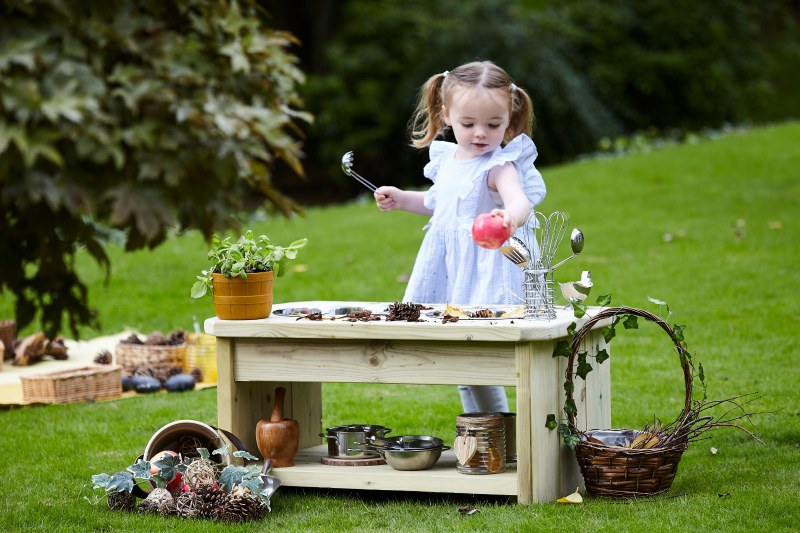 Compact kitchen with a worktop height which is suited to children under 2 years old. Contains 2 x removable bowls and a lower storage shelf for resources. • Made using premium quality Scandinavian Redwood• Smooth finish – soft to touch and no splinters• Rounded edges for added safety• Sturdy and durable design • 2 x removable bowls• Fully assembled • Manufactured in the UK• Specially treated timber guaranteed for 10 years• W800 x D435 x H400mm