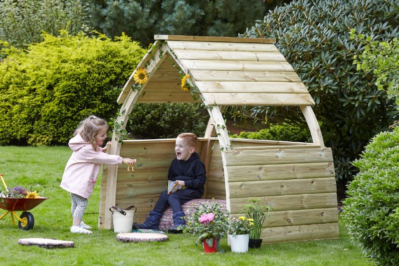 Item lookup code: DR072The Play Shelter is the perfect hide-out, relaxing area or quiet outdoor space. Easy to decorate for a chosen theme and a great place to seek shelter in rain. • Made using premium quality Scandinavian Redwood• Smooth finish – soft to touch and no splinters• Rounded edges for added safety• Sturdy and durable design • Delivered as main components which then require self-assembly • Manufactured in the UK• Specially treated timber guaranteed for 10 years• W1400 x D1100 x H1400mm