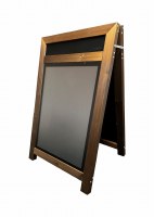 This high quality, UK-made A-frame poster holder with 6mm exterior grade moisture resistant melamine panels and PVC poster covers is a perfect way to get your message across - indoors or outdoors! The panel is divided with a wooden crossbeam to create header space.The anti-glare PVC front sheets have a black magnetic surround which holds A1 posters securely in position.