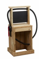 Features include a fuel pump, working water pump (operated by hand) and chalkboard. A steel bucket (holding the water) sits in the base of the unit and can be refilled as often as required.
