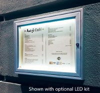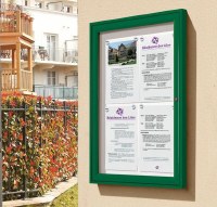 Item lookup code: 505000This slimline, compact and elegant noticeboard provides lasting protection for documents displayed outdoors. Low profile frame depth of just 30mm. Available in anodised aluminium, or painted in a choice of 6 powder-coated RAL colours