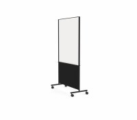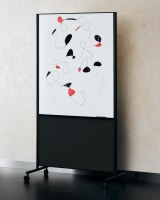 A double-sided whiteboard featuring two magnetic ceramic steel writing surfaces and a textile-clad sound blocker underneath. Available in 3 widths (1067, 1567, or 2067mm), this multifunctional screen serves as a versatile tool in any workspace. The generous pen tray accommodates numerous pens and accessories, while also protecting the fabric below. Available with legs, frame, and textile in either black or white, complemented by four matching wheels, two of which are lockable.